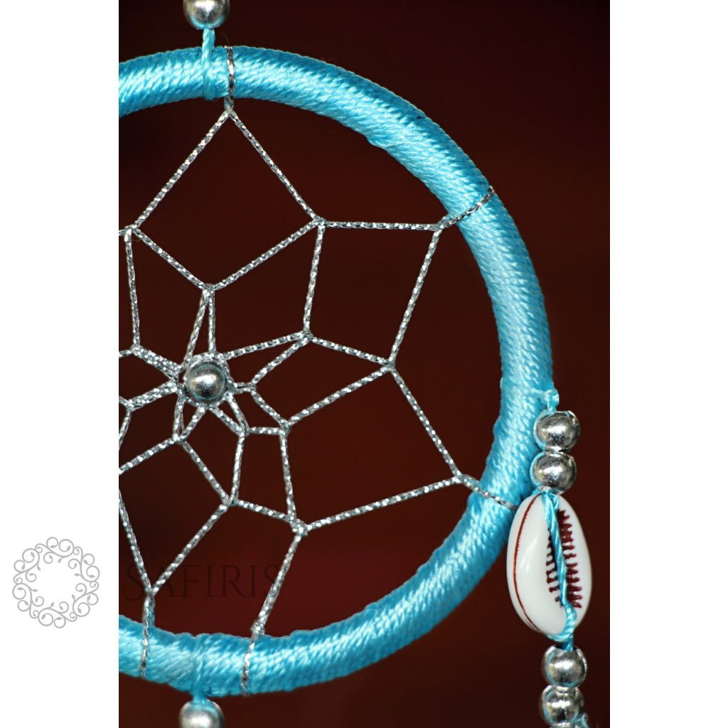 Krásný lapač snů Héra v tyrkysové barvě, která byla velice oblíbena v indiánské kultuře. Odtud také pochází lapač snů na ochranu před zlými sny. Vnímejte pozitivní atmosféru pomocí tohoto lapače snů s peříčky, korálky, mušlemi a klasickým výpletem ve tvaru květiny.