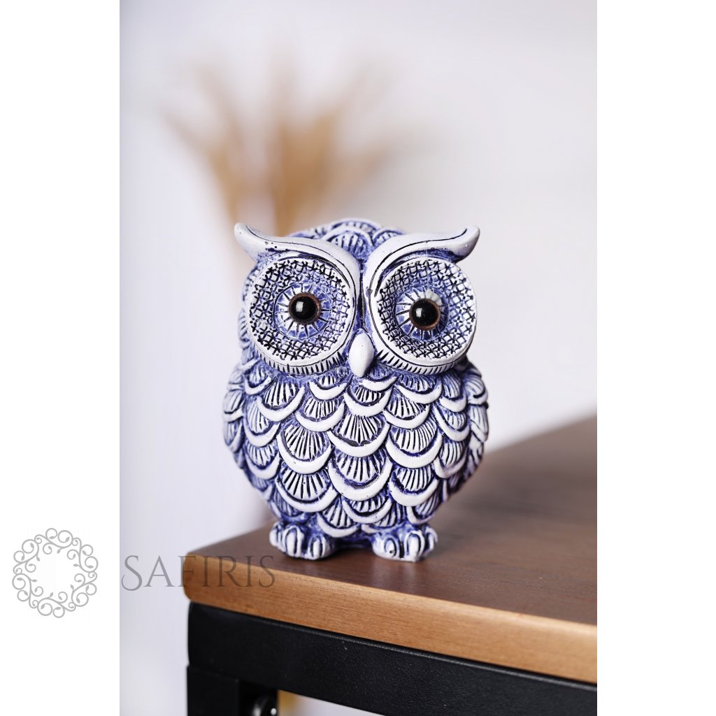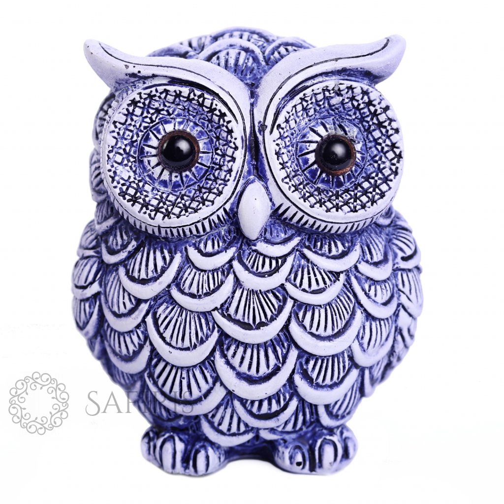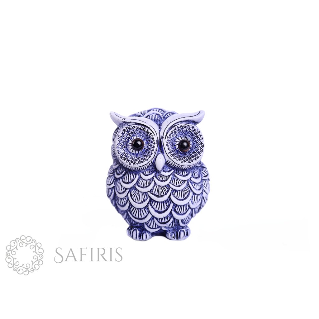 Malá modrá soška sovy, která je symbolem moudrosti. Soška je jako dekorativní prvek vhodná do každého interiéru. Umístit ji můžete kamkoliv a vykouzlit tak pohodu a útulný domov. Při její výrobě byl kladen důraz na kvalitu a každý detail. Skleněné oči sovičky jsou jako živé.